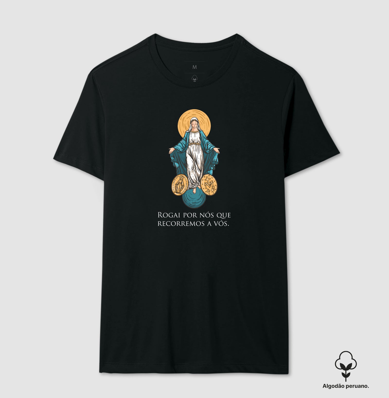 Produzido no Brasil com algodão premium, e qualidade Reserva. Estampas que nos permite expressa sua fé no dia-a-dia.